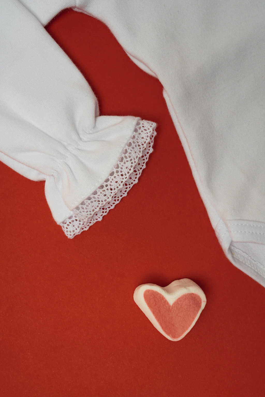 Body em 100% algodão pima com gola de cambraia franzida feita em casinha de abelha com bordado de coração vermelho.